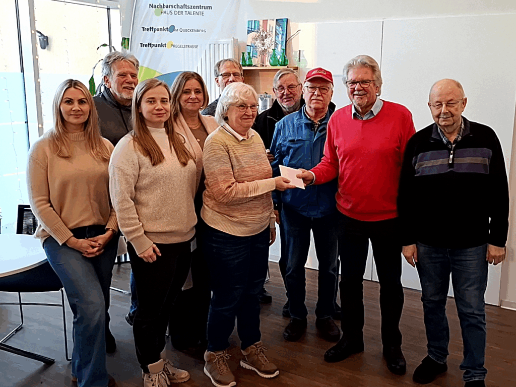 Die Übergabe der Spende an Christa Eggestein (Trainerin), Laura Pichelmeier (stellvertretende Abteilungsleiterin) und Wolfgang Grenda (Pressewart) vom SC Viktoria fand am 14. Januar 2026 bei Kaffee und Kuchen im Nachbarschaftszentrum statt. Diese Spende unterstreicht die enge Zusammengehörigkeit sowie die gegenseitige Unterstützung der verschiedenen Gruppen in der Weststadt.